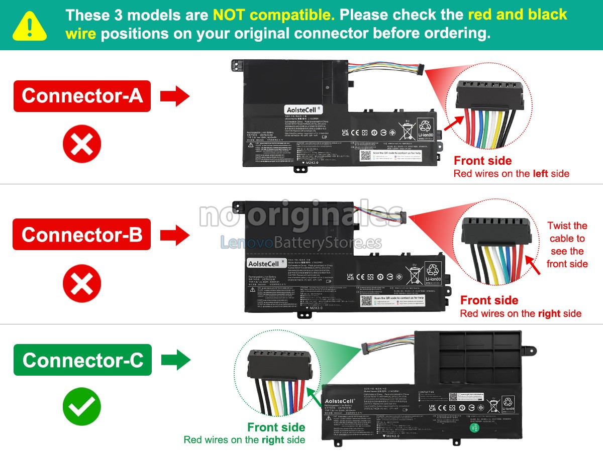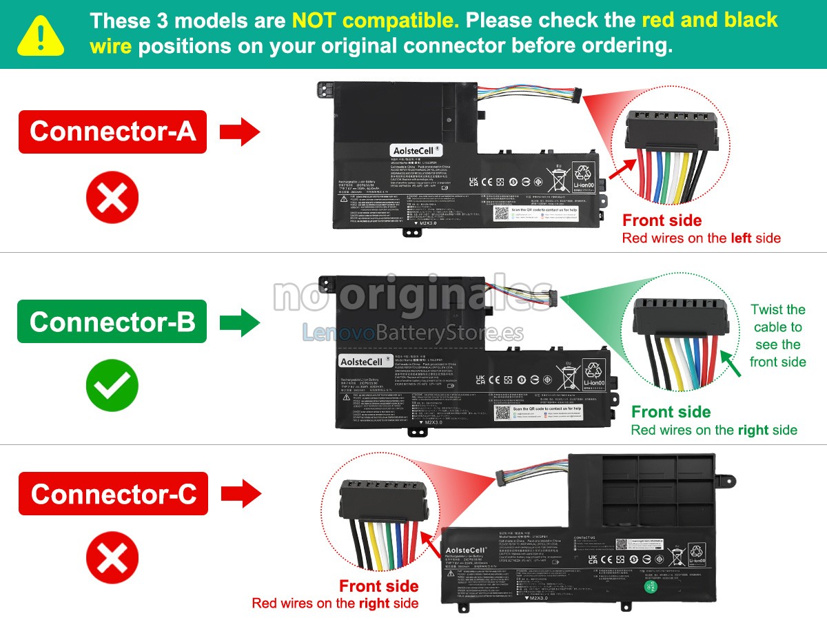 Haremos todo lo posible para brindarle mejor batería y excelente servicio. Por favor siga las sugerencias siguientes para disfrutar completamente de nuestros servicios.- Por favor anote el modelo de su portátil en la columna "Mensaje al vendedor" al realizar su pedido. Comprobaremos si la batería para laptop Lenovo L15L2PB1 es adecuada para su portátil de Lenovo evitando que compre la batería inapropiada.